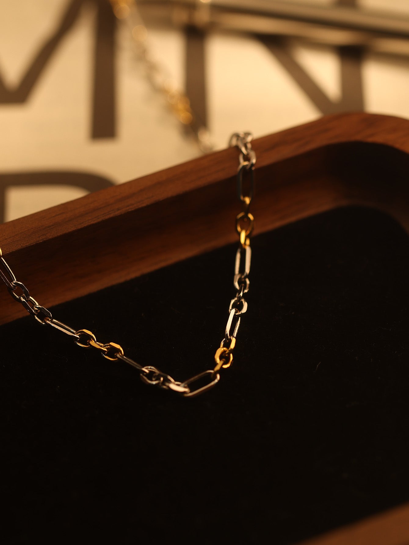 Embrace the refined charm of our Elegant Duality Two - Tone Silver Link Necklace. Skillfully crafted from pure silver, this necklace merges two - tone hues to create a modern yet timeless look. In Western beliefs, silver is a symbol of purity and clarity, thought to enhance self - awareness and ward off negative influences, like a subtle guardian for your spirit.