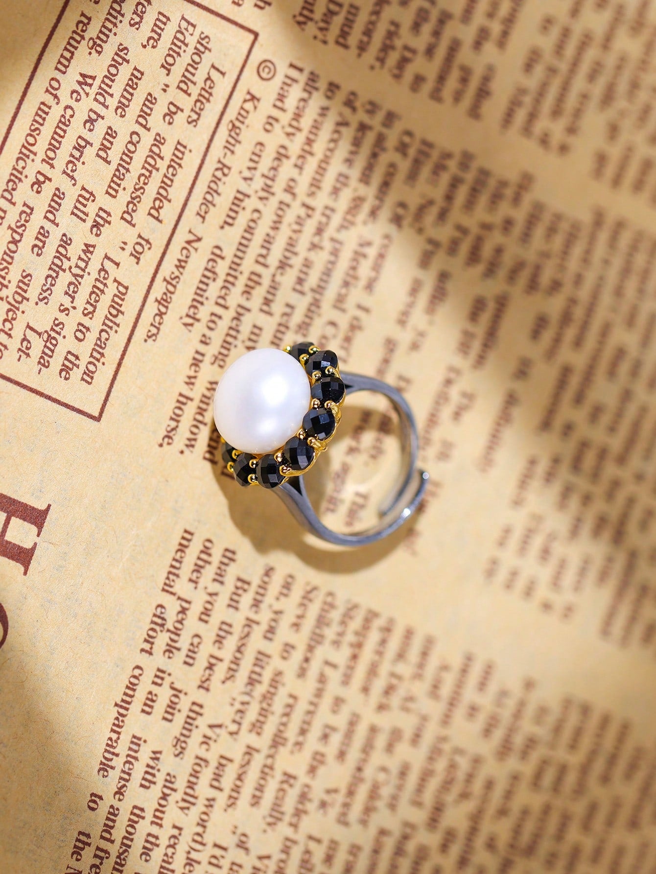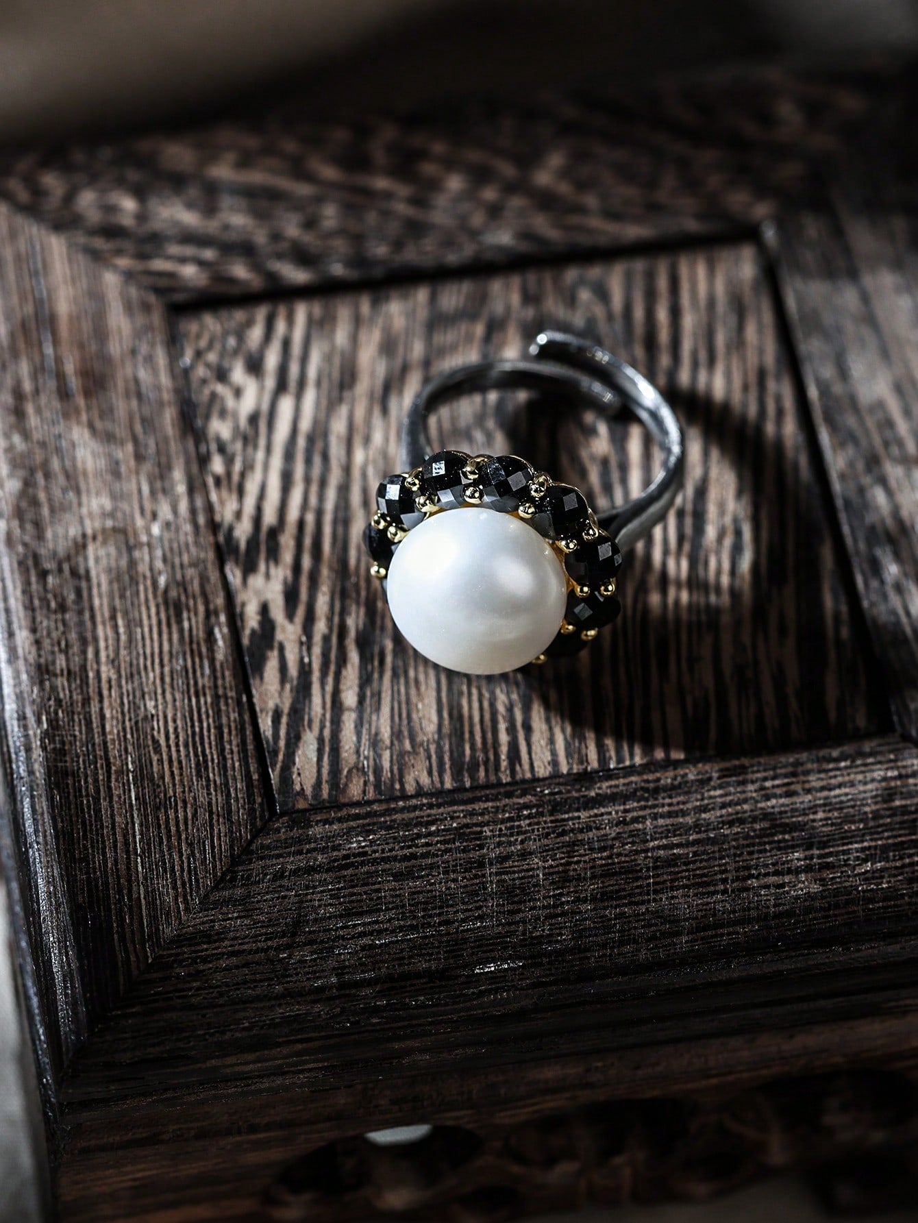This ring is made of high-quality 925 sterling silver, showing an elegant luster and texture. A round and full natural pearl is inlaid in the center, symbolizing purity and nobility, surrounded by a circle of shining black spinels, adding a mysterious and profound atmosphere to the whole. From the perspective of Feng Shui metaphysics, pearls represent perfection, wealth and wisdom in Feng Shui, and can bring good luck and peace to the owner; black spinels have powerful energy, can absorb negative energy, protect the wearer's aura, help you dispel the haze, attract positive fortune, and enhance personal charm and aura. The craftsmanship of the ring is exquisite, and each gem is carefully selected and inlaid to ensure its stability and shine. The gold-plated layer is finely processed and not easy to fade, and can maintain its gorgeous appearance for a long time. Whether it is worn daily or as a gift, this ring can add a unique charm and taste to the wearer. It is an ideal choice for you to express your elegant and mysterious style, and it is also a Feng Shui product that helps you gather energy, attract wealth, and avoid evil.