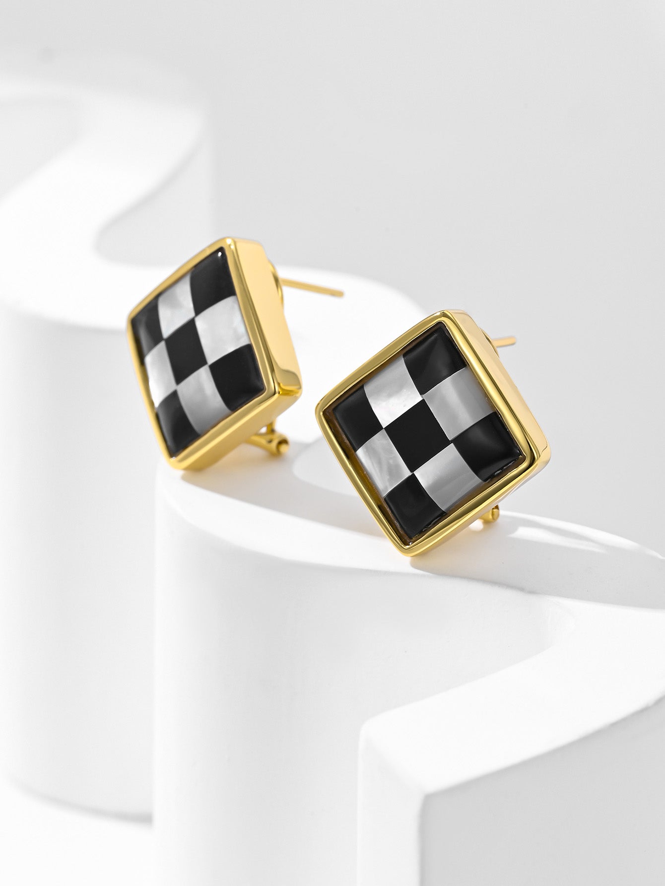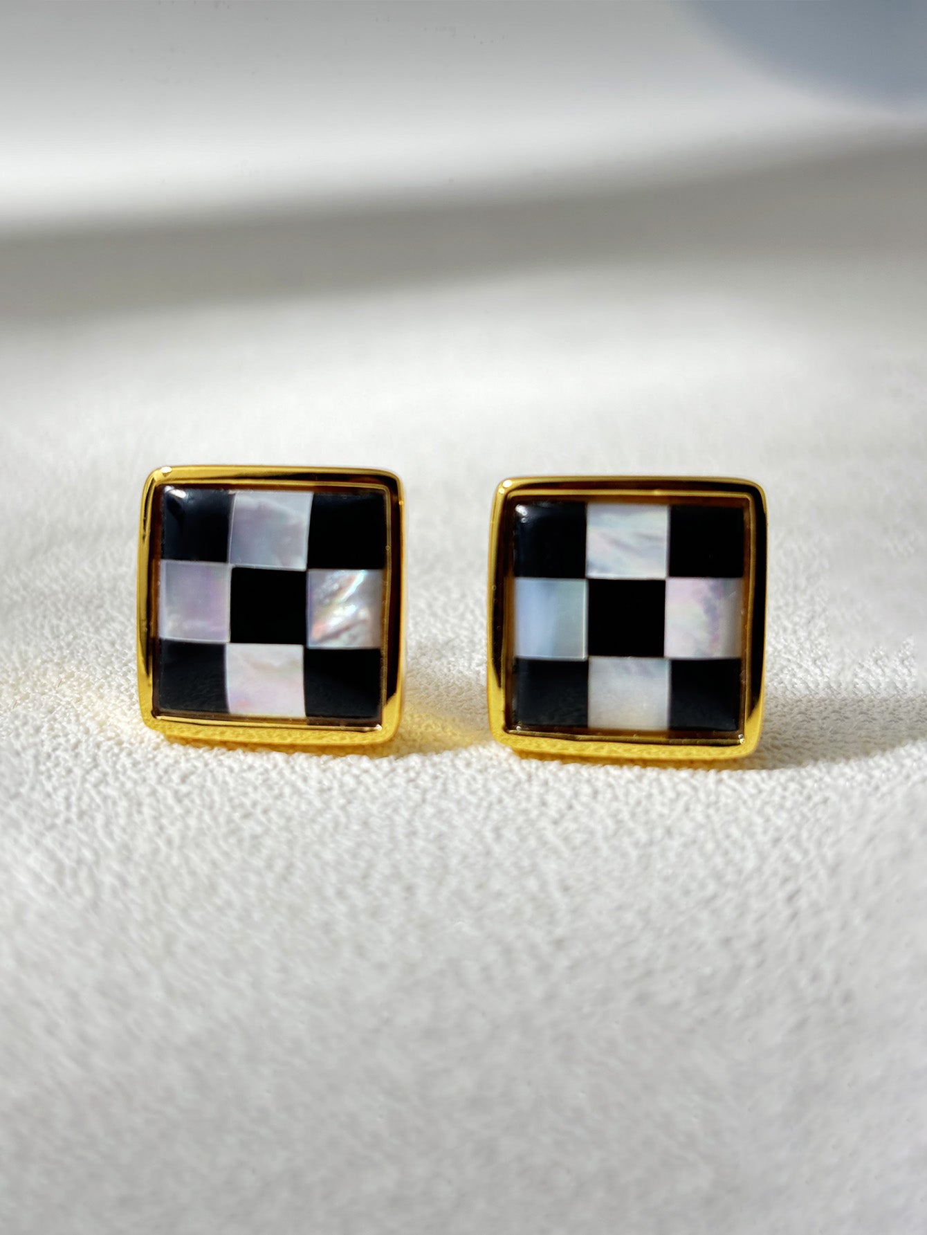 These sterling silver earrings inlaid withwhite shells are simple and classic, showing a fashionable taste. The black and white checkered pattern adds a modern touch and personality. Made of sterling silver, it is comfortable to wear and hypoallergenic. Suitable for all occasions, whether it is daily dress or special events, it can show elegant temperament. It implies balance and harmony, and is an ideal gift for yourself or a friend.