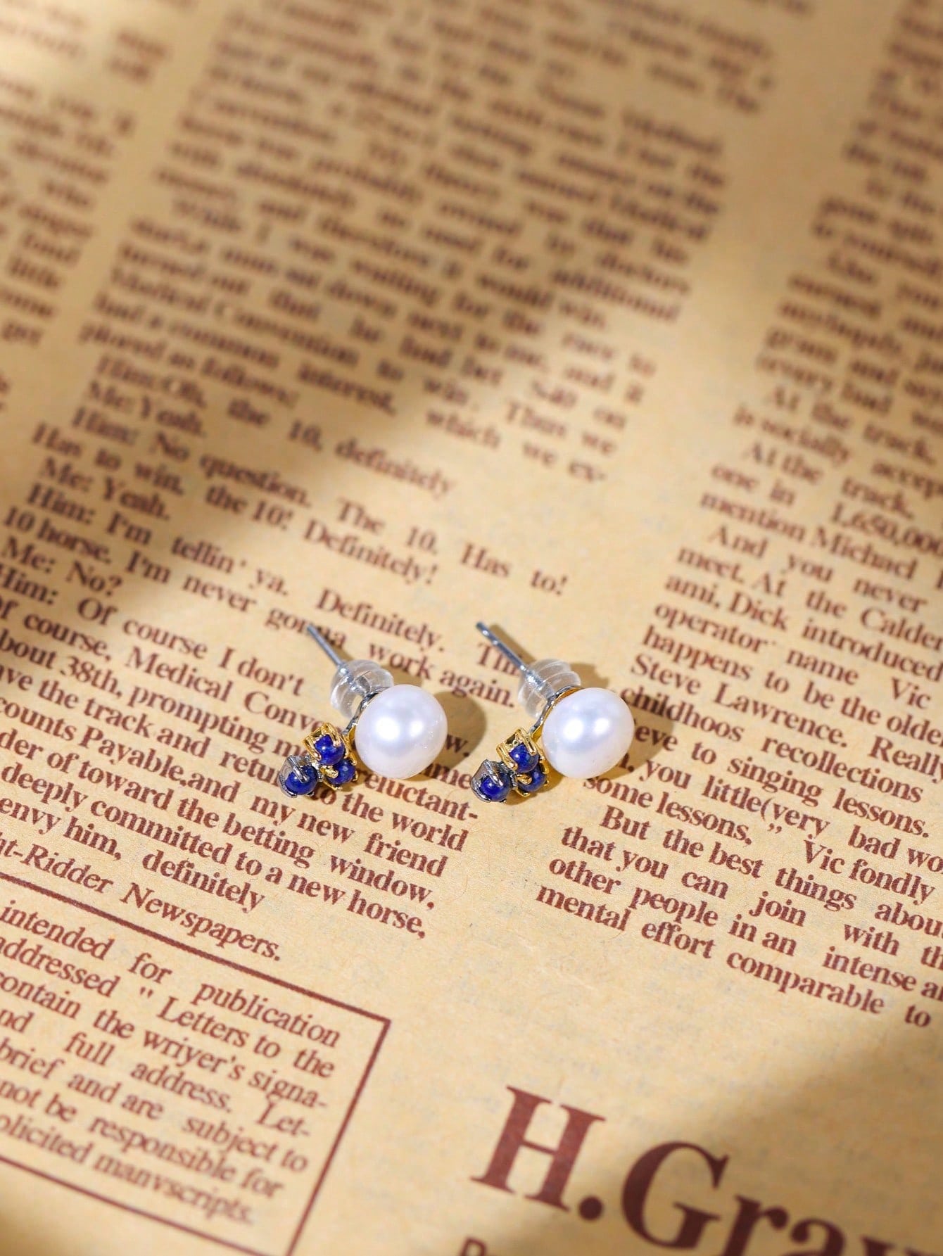 The lapis lazuli dotted beside the pearls adds a mysterious color with a deep and rich blue. In ancient culture, lapis lazuli symbolizes peace, health and wisdom, and is a symbol of auspiciousness. The combination of gold, pearls and lapis lazuli not only forms a sharp and harmonious visual contrast, but also integrates beautiful meanings. The exquisite inlay craftsmanship allows each gem to show its own brilliance firmly and perfectly. Wearing this pair of earrings can become the focus of everyone's attention whether it is daily travel or important occasions, demonstrating the wearer's elegant taste and unique charm.