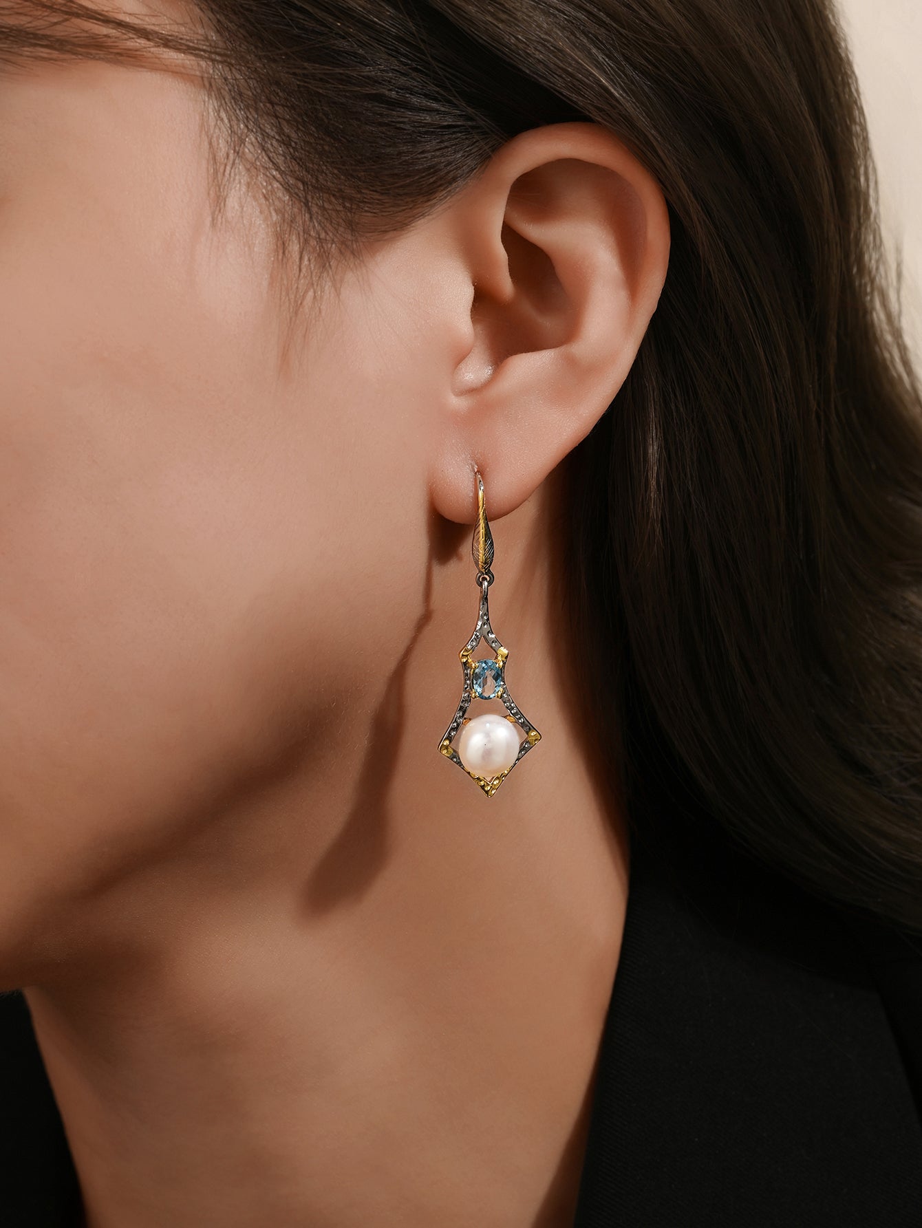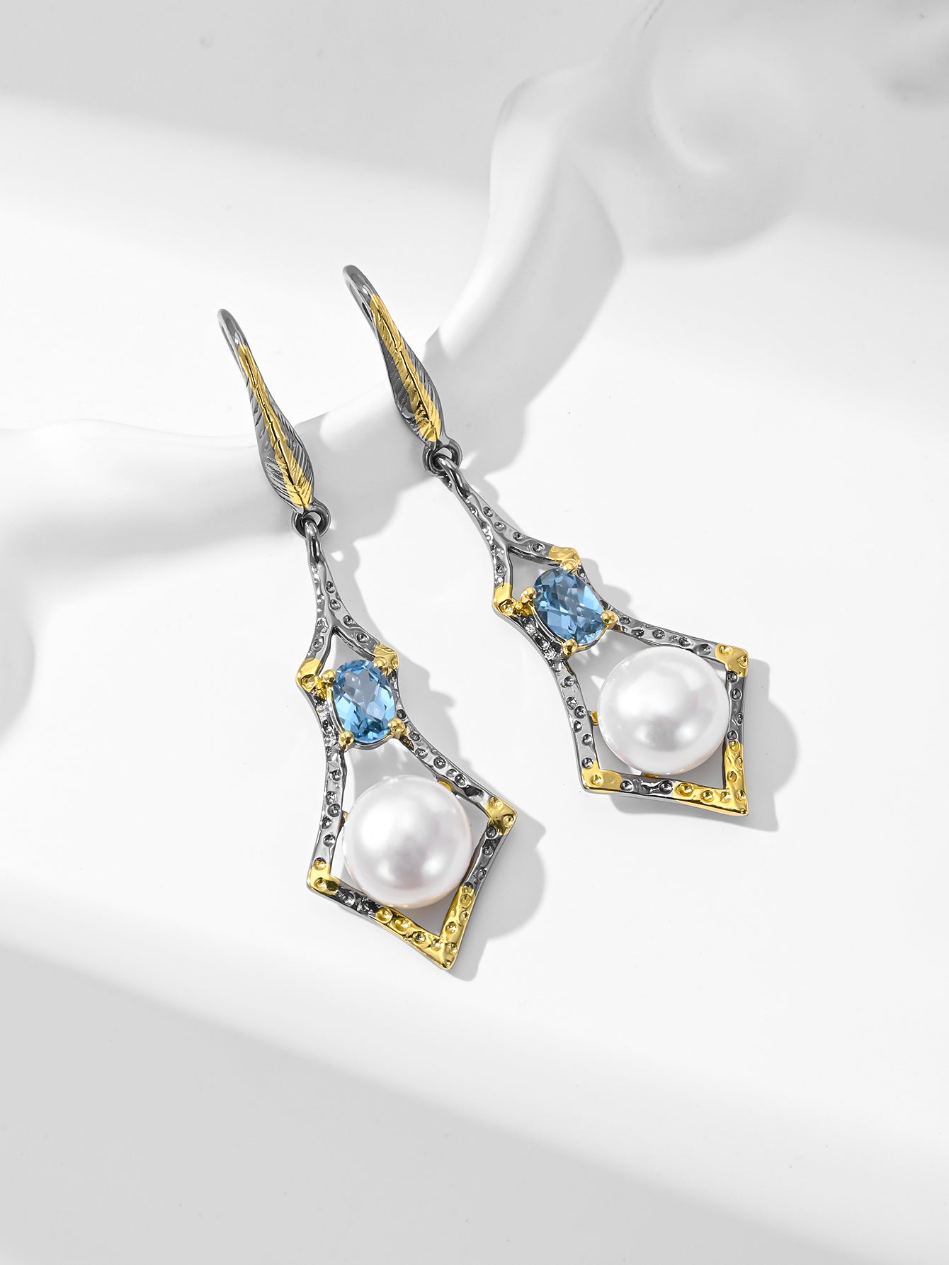 The feather design at the top of the earrings adds a touch of freedom and inspiration - in many Western cultures, feathers symbolize hope, sublimation, and connection to the spiritual world. Wearing these earrings is not just about embellishment, but about embracing the profound energy of pearls and topaz. Whether you are attending a grand event or adding a touch of sophistication to your daily look, these earrings will remind you of your inner light and the beautiful possibilities that exist in life. Let the serenity of pearls, the clarity of topaz, and the inspiration of feathers accompany you to make every moment shine.