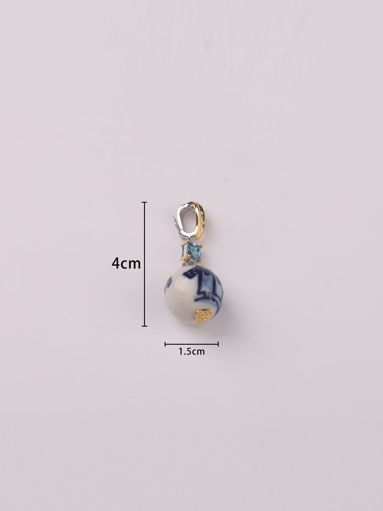 Complementing the ceramic is a sparkling topaz gemstone. Topaz is widely believed in Western cultures to bring joy, love, and abundance. It is thought to have a purifying effect on the spirit, dispelling negativity and filling the wearer's life with positive energy.